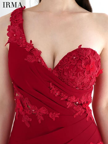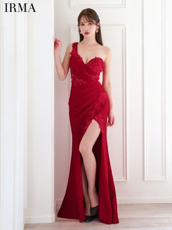色気溢れるデザイン♪ 【IRMA/イルマ】セクシー オープンバスト ワンショルダー フラワーレース スリット タイトロングドレス (41740)