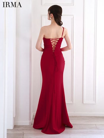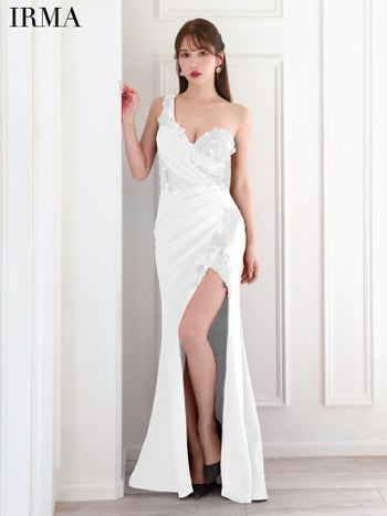 3. 【IRMA/イルマ】セクシー オープンバスト ワンショルダー フラワーレース スリット タイトロングドレス (41740)