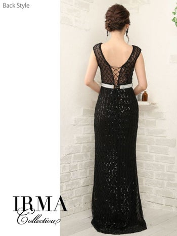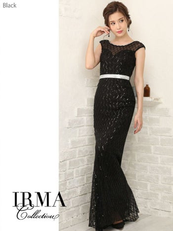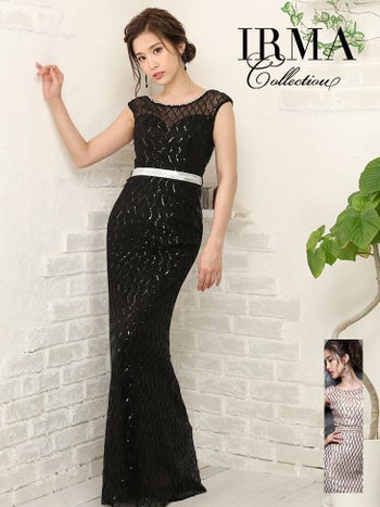 4. 【IRMA/イルマ】クリスタルベルト付き スパンコール タイトロングドレス[2color]