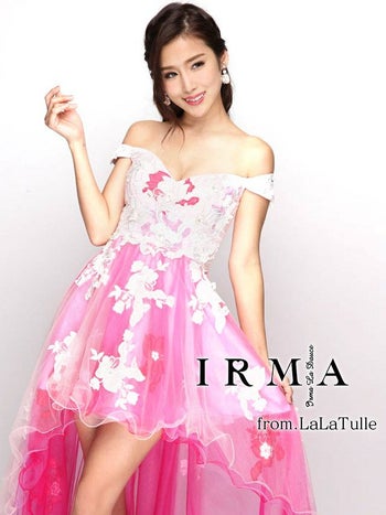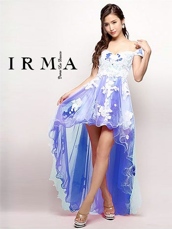 4. 【IRMA/イルマ】刺繍レースチュール オフショルダー ロングテールドレス[ブルー]