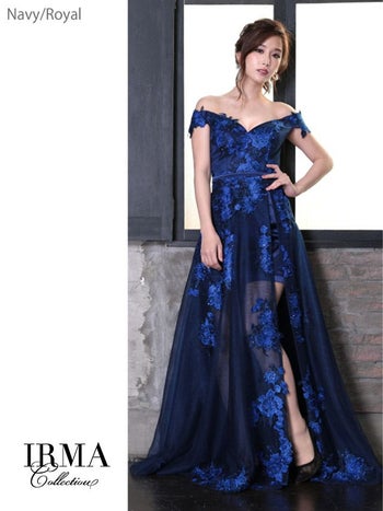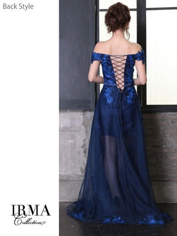 4. 【IRMA/イルマ】フラワー刺繍×オフショルダー ロングテールドレス[ロイヤル]