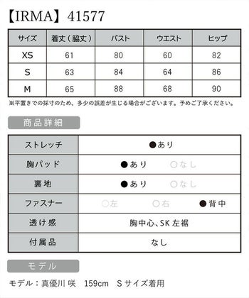 3. 【IRMA/イルマ】スパンコールビジュー シアー バストハートカット レースアップ キャミソール ワンカラー タイトミニドレス(41577)