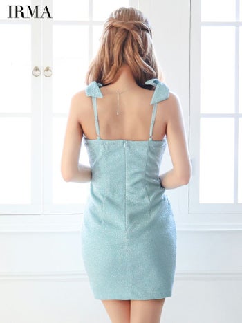 3. 【IRMA/イルマ】セクシー オープンバスト キャミソール ショルダーリボン ビジュー タックデザイン ラメニット タイトミニドレス (51832)
