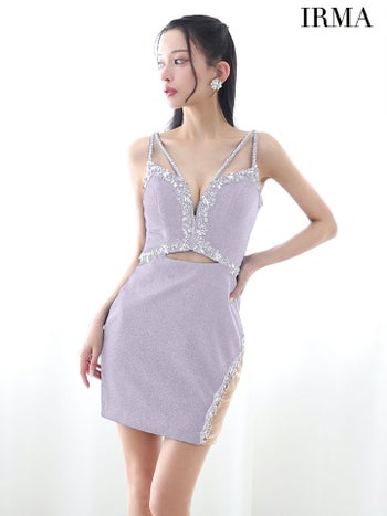 キャバドレス IRMA イルマ ビジュー ジップデザイン カットアウト シースルー キャミソール タイトミニドレス