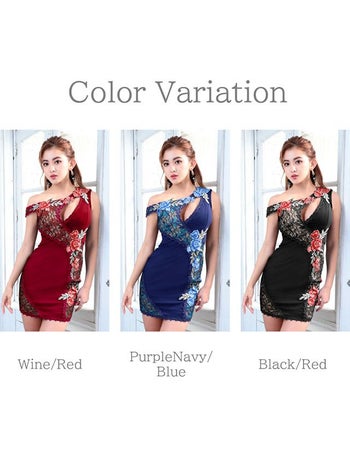 4. 【IRMA/イルマ】バストカットデザイン フラワーレースモチーフ タイトミニドレス[3color][95611]