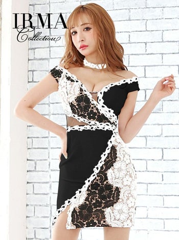 気品に満ちた女性へ導くキャバドレス♪ 【IRMA/イルマ】レース切替 バイカラー タイトミニドレス[95639]