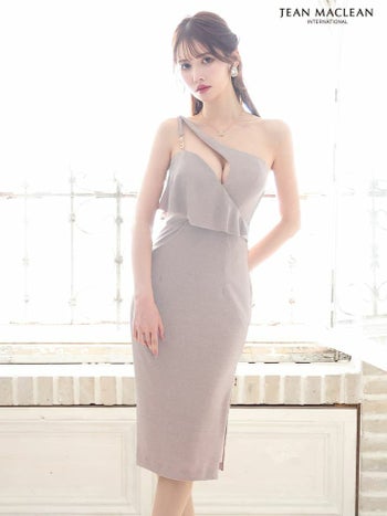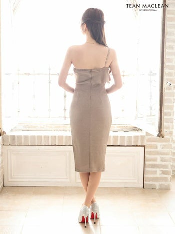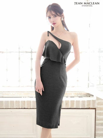 キャバドレス JEANMACLEAN ジャンマクレーン ワンショルダー バストカット ラメニット ジップデザイン セクシー 膝丈ドレス