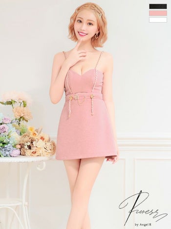 4. 【PURESS/ピュアレス】ハートカットデザイン ショルダーチェーン キャミソール ゴールドチャーム フレアミニドレス(PS302410)