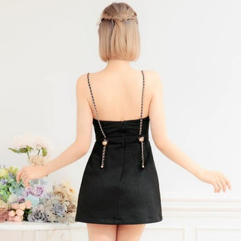 ハートカットデザイン ショルダーチェーン キャミソール ゴールドチャーム フレアミニドレスのイメージ画像7