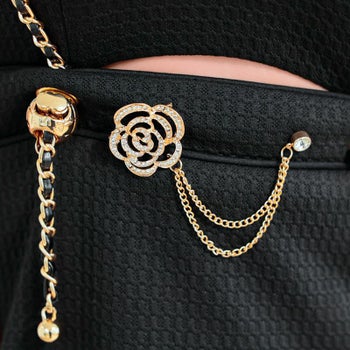 ハートカットデザイン ショルダーチェーン キャミソール ゴールドチャーム フレアミニドレスのイメージ画像6