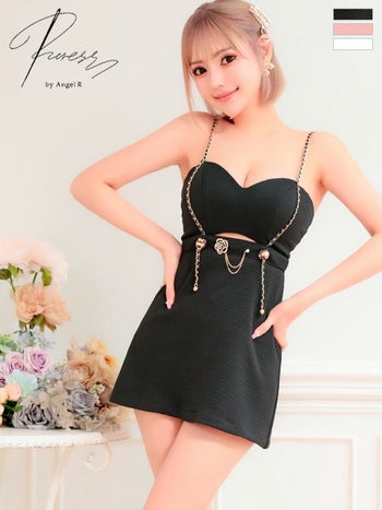 3. 【PURESS/ピュアレス】ショルダーチェーン キャミソール ハートカットデザイン ゴールドチャーム フレアミニドレス(PS302410)