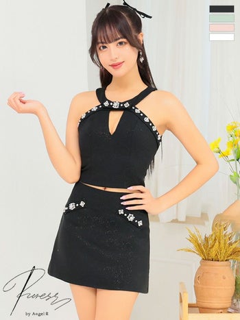 XSあり!大人CUTEな印象☆ 【PURESS/ピュアレス】ビジュー ポケット セクシー オープンバスト セットアップ ホルターネック フレアミニドレス (PS302412)