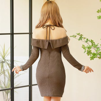 5. SALE【PURESS/ピュアレス】カラービジューオフショルダー長袖タイトミニドレス (PS802308)