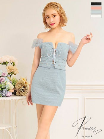 XSあり!愛らしさ溢れる一着☆ SALE【PURESS/ピュアレス】バストレースアップ オフショルダー パールビジュー マイクロタイトミニドレス(PS802410)