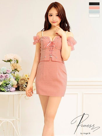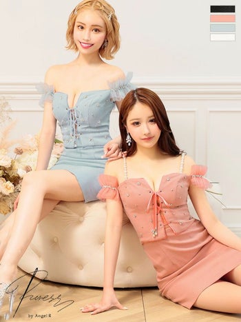 4. SALE【PURESS/ピュアレス】エレガント バストレースアップ オフショルダー パールビジュー マイクロタイトミニドレス(PS802410)