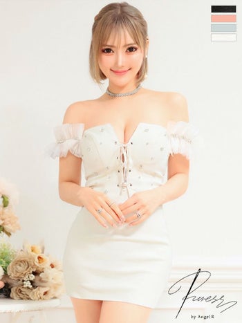 3. SALE【PURESS/ピュアレス】エレガント バストレースアップ オフショルダー パールビジュー マイクロタイトミニドレス(PS802410)