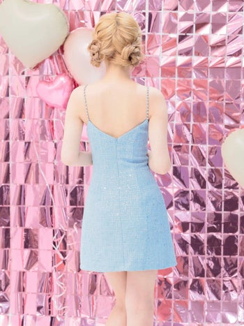 3. 【PURESS/ピュアレス】スパンコール生地 バストリボンデザイン セクシー ビジュー キャミソール 台形スカート フレアミニドレス(PS802419)
