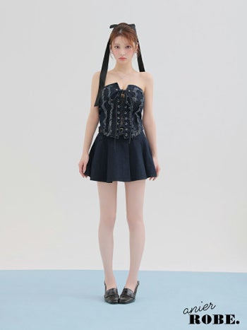 XSあり!Y2Kな雰囲気があるデザイン♡ 【ANIER./アニエル】レースアップ ベルト セットアップ セクシー ベアトップ デニム フレアミニドレス (anier4049)