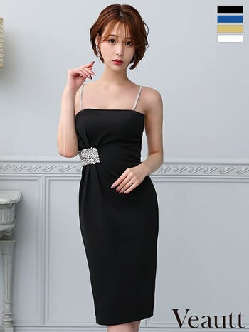 XSあり!メリハリあるボディラインを演出♪ 【Veautt/ヴュート】ベアトップ ウエストタック ビジュー セクシー 膝丈ドレス (VT082502)
