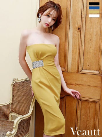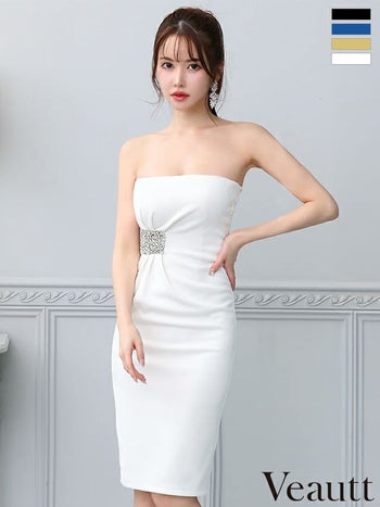 3. 【Veautt/ヴュート】ウエストタック ビジュー セクシー ベアトップ 膝丈ドレス (VT082502)