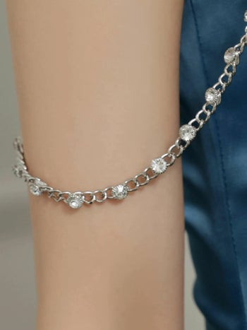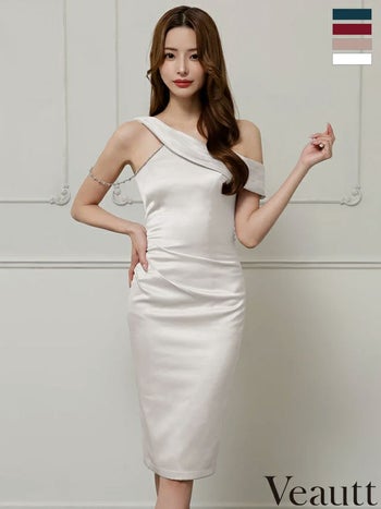 4. 【Veautt/ヴュート】サテン アシンメトリー ワンショルダー エレガント ビジューチェーン スリット 膝丈ドレス (VT082525)