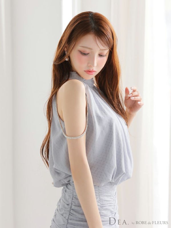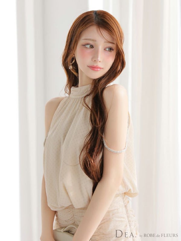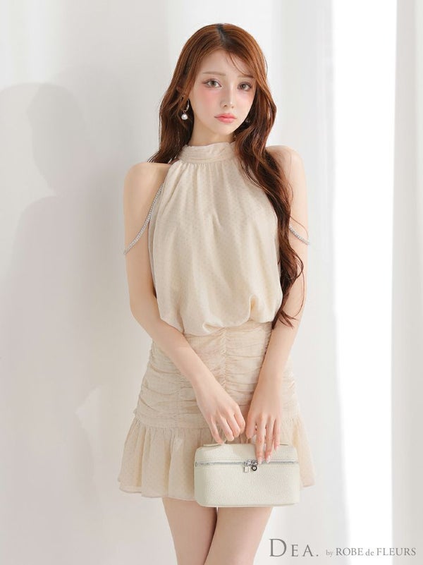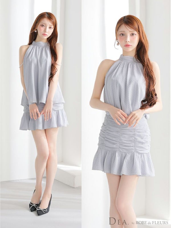 キャバドレス DEA. ROBE de FLEURS ディア ローブドフルール ホルターネック ドット柄 シフォン セットアップ シンプル フレアミニドレス