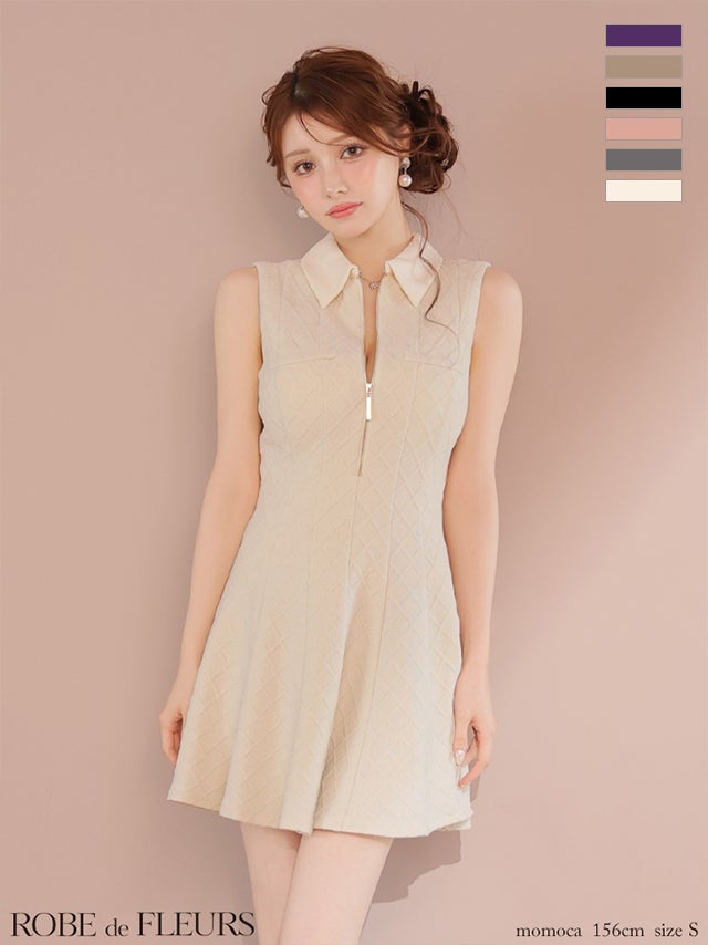 他の画像を見る XS~Lあり!普段着としても◎ 【ROBEdeFLEURS/ローブドフルール】ジップデザイン シンプル 襟付き ノースリーブ ラメ フレアミニドレス (fm4212) ¥ 28,380 税込 詳細を見る お気に入りに登録する
