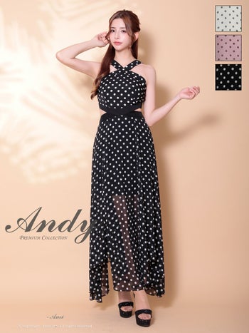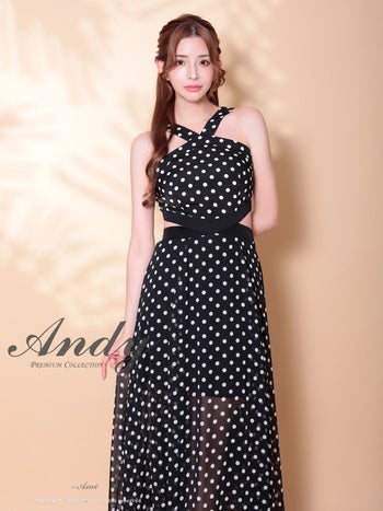 キャバドレス Andy アンディ カットアウト ドット柄 シフォン ホルターネック Aラインロングドレス