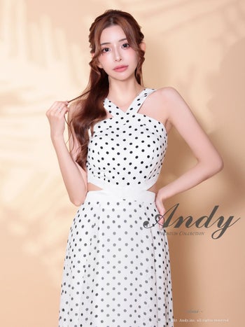 XSあり!くびれと背中がチラッと見えて周りをドキッとさせる☆ 【Andy/アンディ】カットアウト ドット柄 シフォン ホルターネック Aラインロングドレス(anon2946)