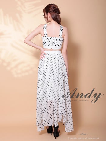 キャバドレス Andy アンディ シフォン カットアウト ドット柄 ホルターネック Aラインロングドレス