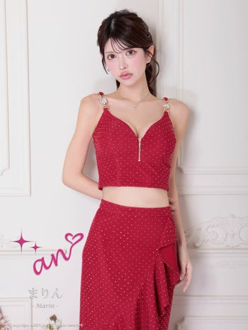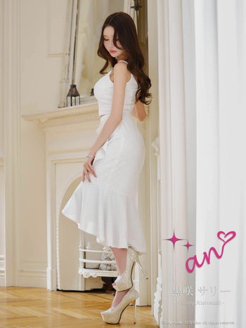 キャバドレス an セクシー チャーム ジップデザイン ドット柄 裾フリル ノースリーブ セットアップ ロングテールドレス