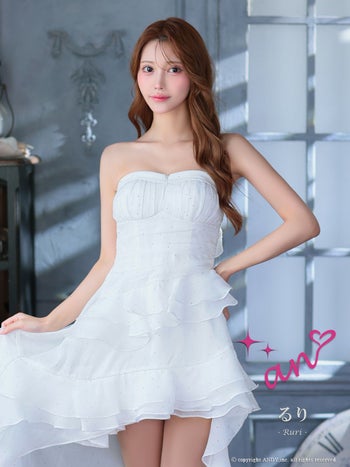 XSあり!セクシーと可愛いの良いとこ取り♪ 【an/アン】キャミソール ジップデザイン ビジュー ドット柄 フリル ロングテールドレス(aoc3945)