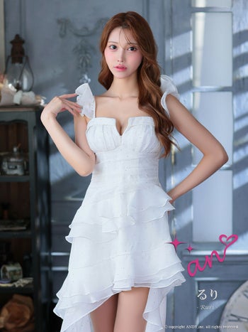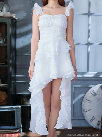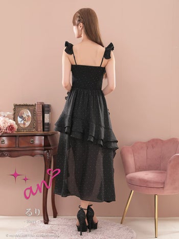 4. 【an/アン】キャミソール ジップデザイン ビジュー ドット柄 フリル ロングテールドレス(aoc3945)