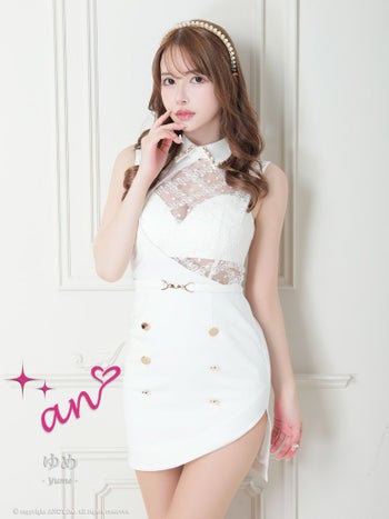 キャバドレス タイトミニドレス an アン ドット チュール ノースリーブ フロントボタン 襟付き タイトミニドレス