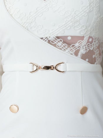 ハイウエストでスタイルアップ♪ 【an/アン】ドット チュール ノースリーブ フロントボタン 襟付き タイトミニドレス(aoc3483)