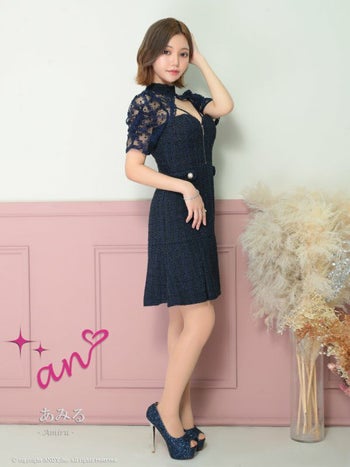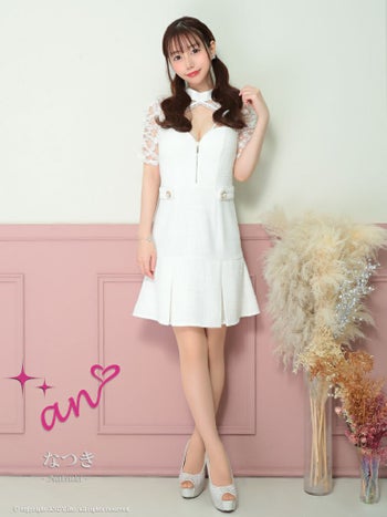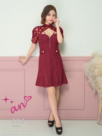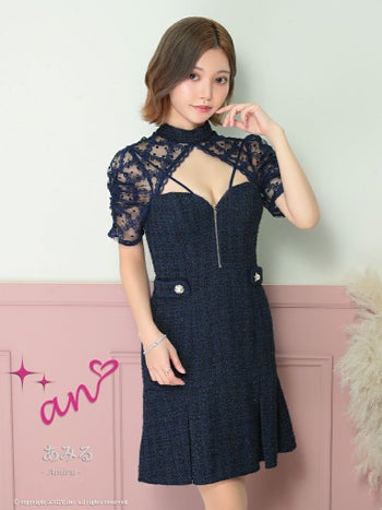 キャバドレス ミニドレス an アン ラメ ツイード ジップデザイン プリーツ ドット柄 レース 半袖 フレアミニドレス