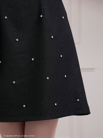 3. 【an/アン】ノースリーブ ジップデザイン ビジュー ドット柄 バックカット フレアミニドレス(aoc3796)