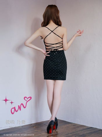 キャバドレス an ガーリー ビジュー ドット柄 バッククロス キャミソール チャーム サイドタック タイトミニドレス