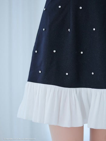 ドット柄 バイカラー ビジュー キャミソール 裾フリル リボン バストシースルー フレアミニドレスのメイン画像3