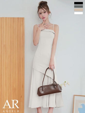 キャバドレス Angel R エンジェルアール エレガント キャミソール アシンメトリーデザイン シフォン ラメ ドット柄 タイトロングドレス