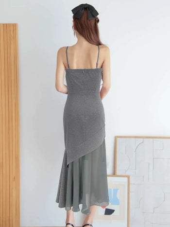 3. 【Angel R/エンジェルアール】シフォン キャミソール アシンメトリーデザイン ラメ ドット柄 エレガント タイトロングドレス (AR25872)