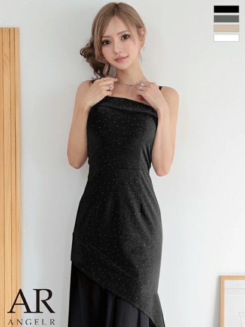 大人上品なスタイルを叶える♡ 【Angel R/エンジェルアール】アシンメトリーデザイン シフォン ドット柄 キャミソール ラメ エレガント タイトロングドレス (AR25872)