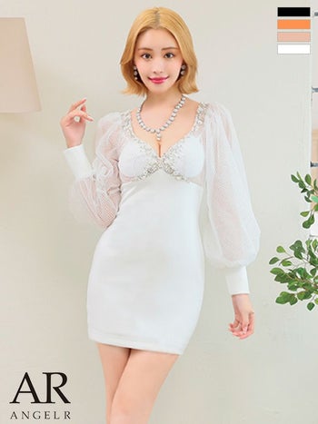 XSあり!華やかながらも気品溢れる☆ SALE【Angel R/エンジェルアール】フラワービジュー ドット柄 長袖 シースルー タイトミニドレス (AR24820)