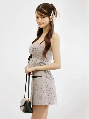 4. 【Angel R/エンジェルアール】キャミソール セットアップ ドット柄 リボン リボン ペプラム フレアミニドレス (AR25256)