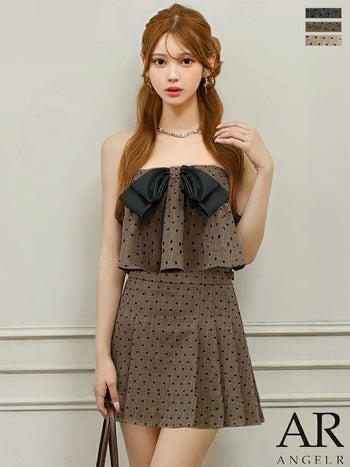 キャバドレス Angel R エンジェルアール ドット柄 ビッグリボン ベアトップ キャミソール セットアップ フレアミニドレス