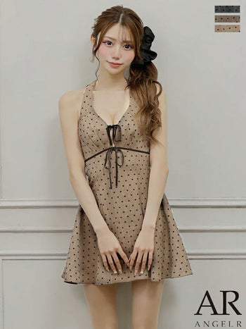 XSあり!ドット×リボンが可愛さを引き立てる♡ 【Angel R/エンジェルアール】ドット柄 バストリボン Vカット ホルターネック ガーリー フレアミニドレス (AR25850)