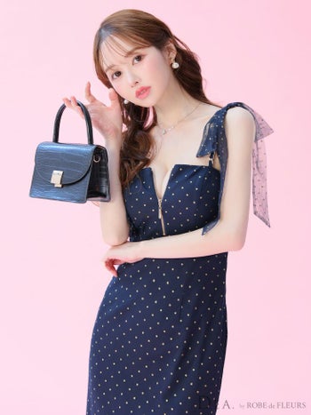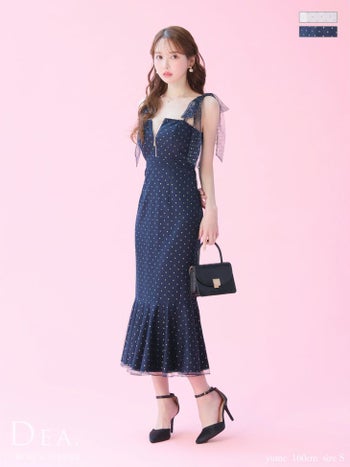 Lあり!上品レディーな一着♡ 予約商品【4月下旬入荷予定】【DEA.by ROBE de FLEURS/ディア】ドット柄 ジップデザイン チュール キャミソール マーメイドロングドレス(DE3380)