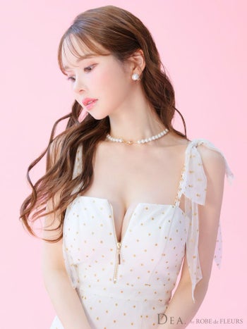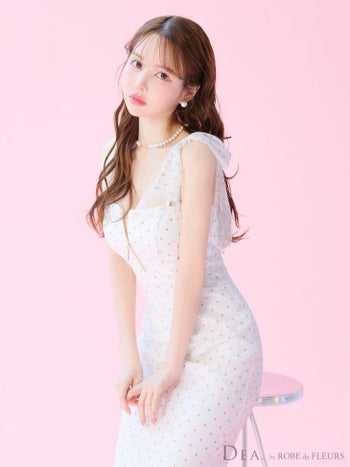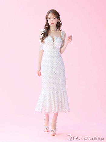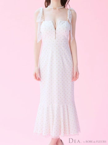 3. 予約商品【4月下旬入荷予定】【DEA.by ROBE de FLEURS/ディア】ドット柄 ジップデザイン チュール キャミソール マーメイドロングドレス(DE3380)