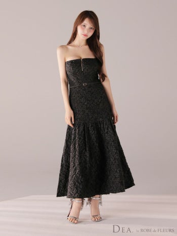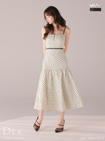 4. 予約商品【4月下旬入荷予定】【DEA.by ROBE de FLEURS/ディア】キャミソール ジップデザイン ウエストベルト ジャガード ドット柄 エレガント マーメイドロングドレス(DE4333)