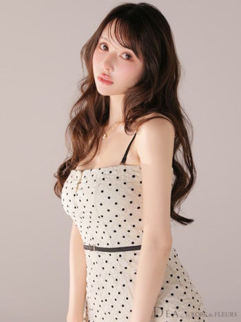 3. 予約商品【4月下旬入荷予定】【DEA.by ROBE de FLEURS/ディア】キャミソール ジップデザイン ウエストベルト ジャガード ドット柄 エレガント マーメイドロングドレス(DE4333)